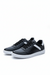 LONDRES NEGRO calzado fabricado en sintético o cuerna en color negro con pequeños vivos a sus costados y la parte trasera en color blanco, su suela en pvc de este mismo  color ,para un excelente contraste blanco negro