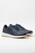 LINCON AZUL calzado masculino fabricado en sintético tipo cuerina con una mezcla en azul entre lisos y grados, pequeños vivos en un tono miel y su suela de pvc en color blanco crema