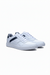 LONDRES BLANCO calzado fabricado en sintético o cuerna en color blanco con pequeños vivos a sus costados y la parte trasera en color azul profundo , su suela en pvc de tambien en color blanco dando así una elegancia que llevaras siempre